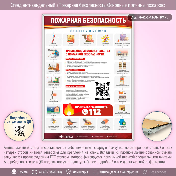 Стенд антивандальный «Пожарная безопасность. Основные причины пожаров» (M-41-1-А1-ANTIVAND) в Видном купить