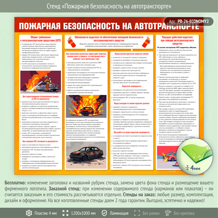 Стенд «Пожарная безопасность на автотранспорте» (PB-26-ECONOMY2) в Видном купить