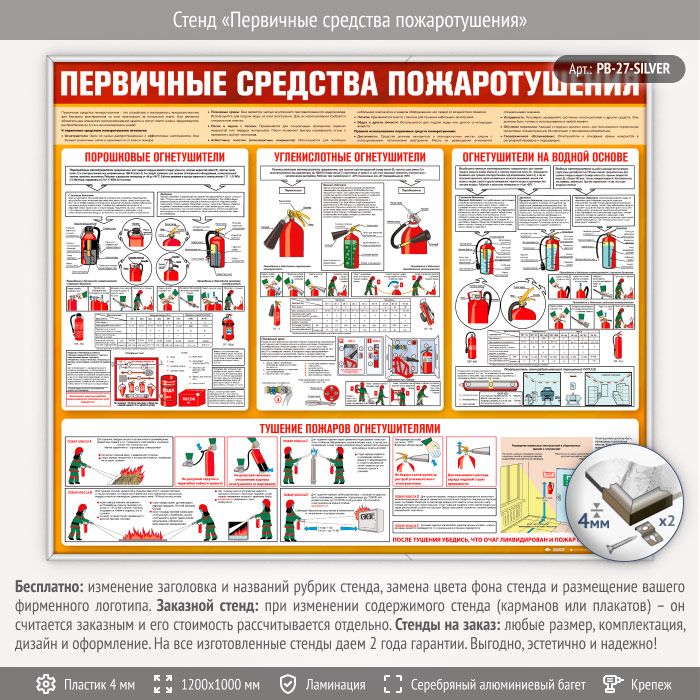 Стенд «Первичные средства пожаротушения» (PB-27-SILVER) в Видном купить