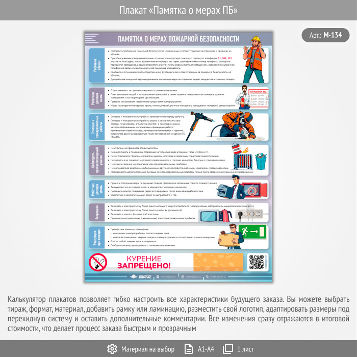 Плакат «Памятка о мерах ПБ» с QR (М-134, 1 лист) в Видном купить