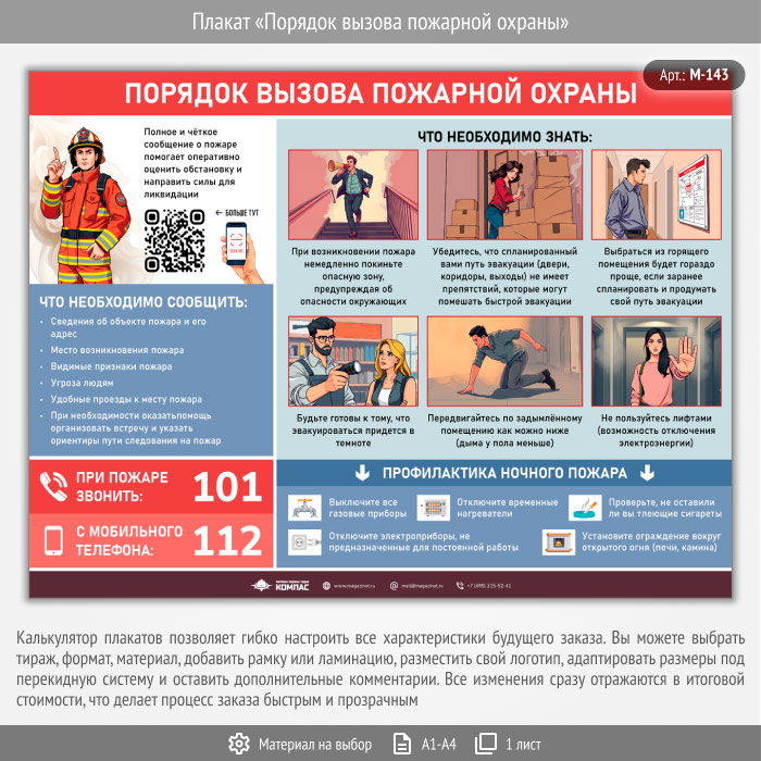 Плакат «Порядок вызова пожарной охраны» с QR (М-143, 1 лист) в Видном купить