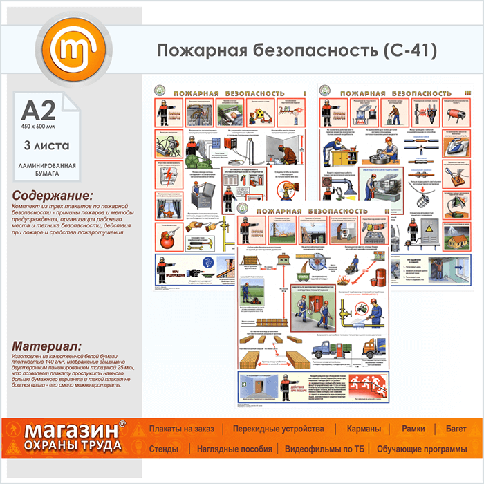 Плакаты «Пожарная безопасность» (С-41, ламинированная бумага, А2, 3 листа) в Видном купить
