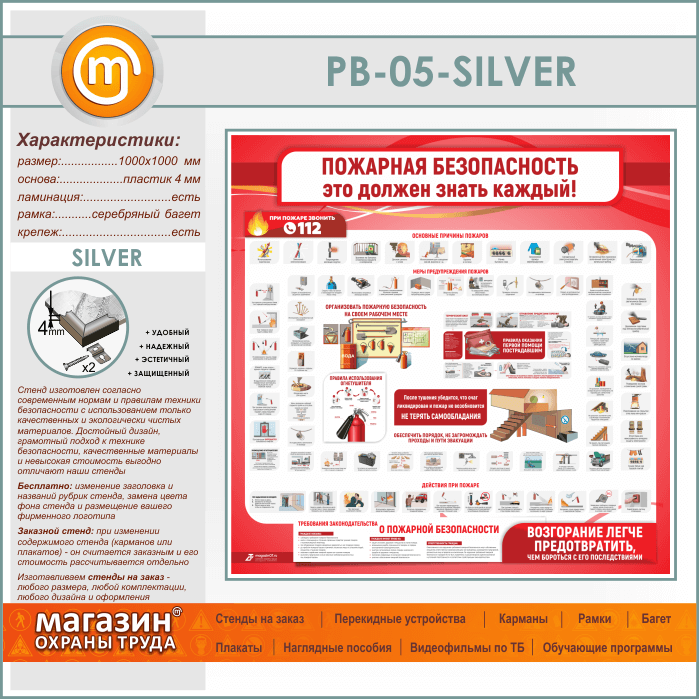 Стенд «Пожарная безопасность. Это должен знать каждый» (PB-05-SILVER) в Видном купить