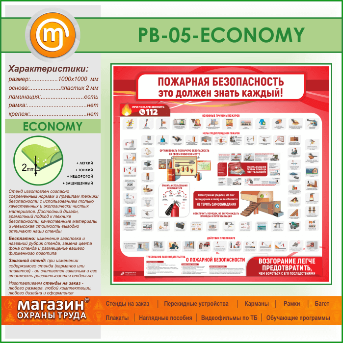 Стенд «Пожарная безопасность. Это должен знать каждый» (PB-05-ECONOMY) в Видном купить