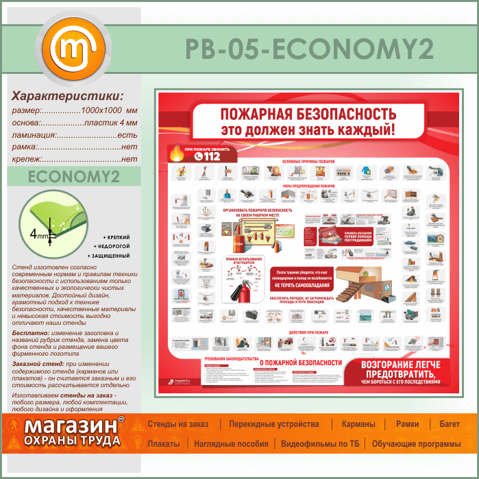 Стенд «Пожарная безопасность. Это должен знать каждый» (PB-05-ECONOMY2) в Видном купить