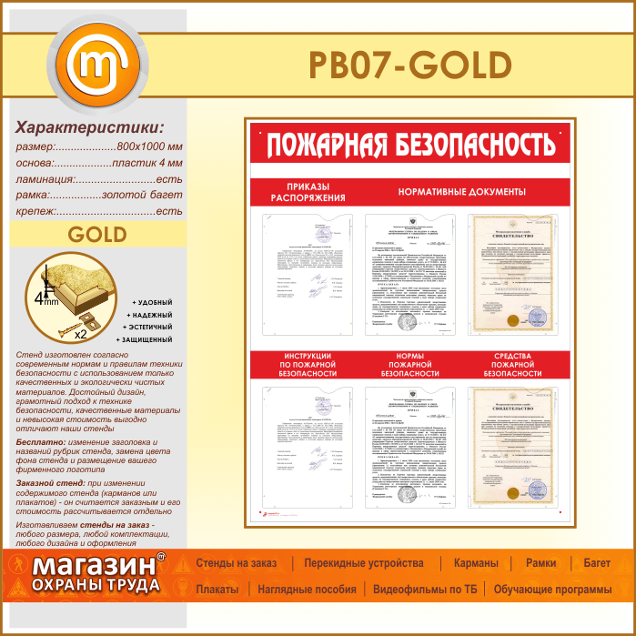 Стенд «Пожарная безопасность» с 6 карманами (PB-07-GOLD) в Видном купить