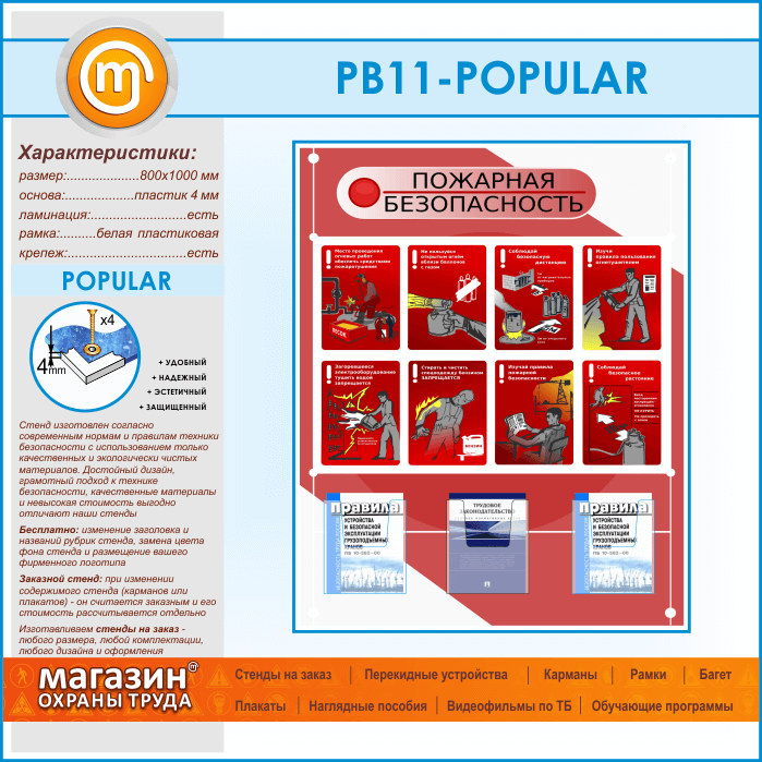 Стенд «Стенд пожарная безопасность в строительстве» с 3 объемными карманами (PB-11-POPULAR) в Видном купить