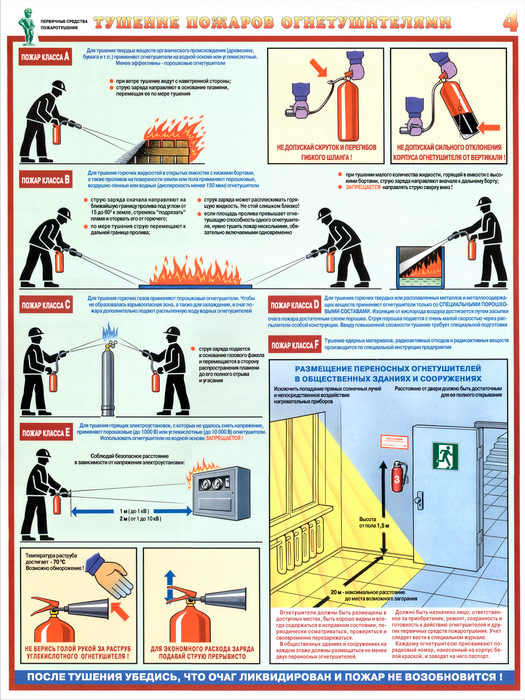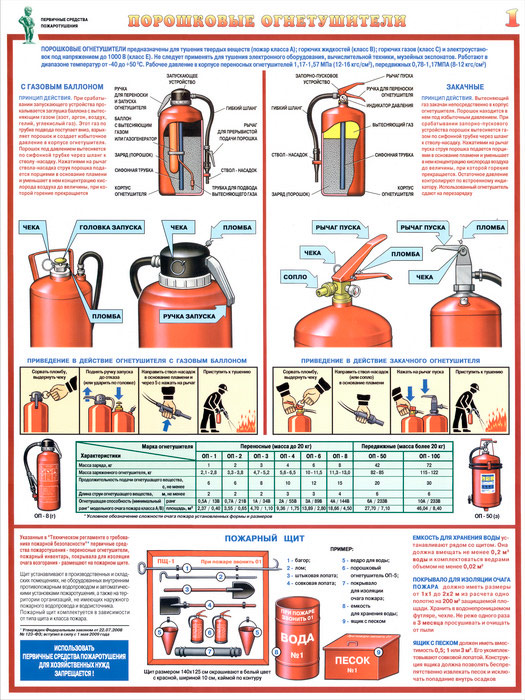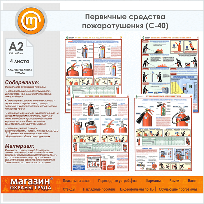 Плакаты «Первичные средства пожаротушения» (С-40, ламинированная бумага, А2, 4 листа) в Видном купить