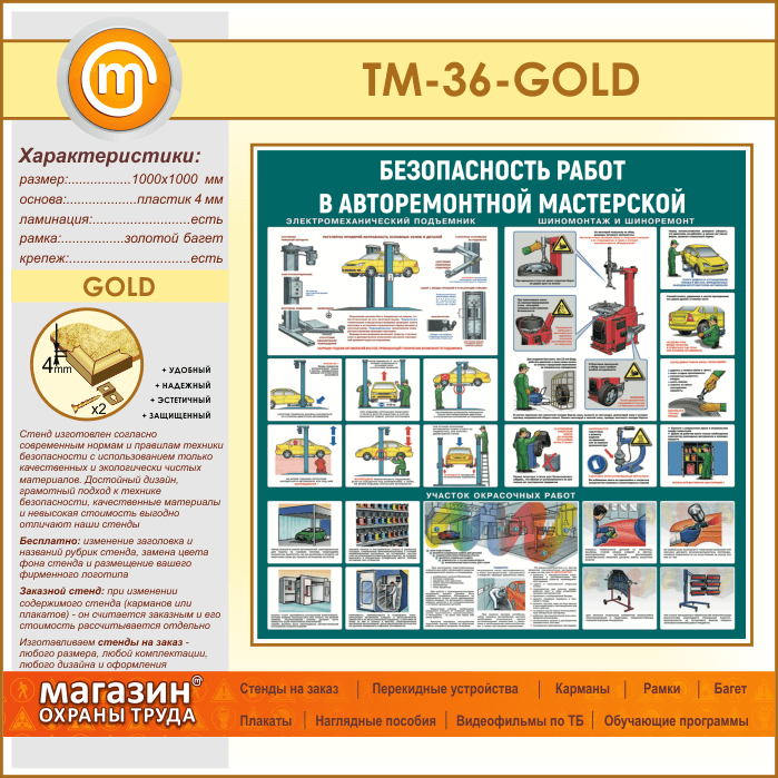Стенд «Безопасность работ в авторемонтной мастерской» (TM-36-GOLD) в Видном купить