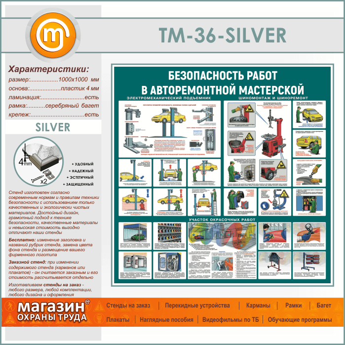 Стенд «Безопасность работ в авторемонтной мастерской» (TM-36-SILVER) в Видном купить