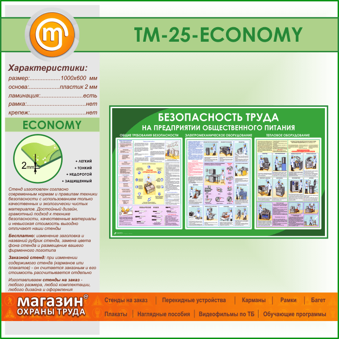 Стенд «Безопасность труда на предприятиях общественного питания» (TM-25-ECONOMY) в Видном купить
