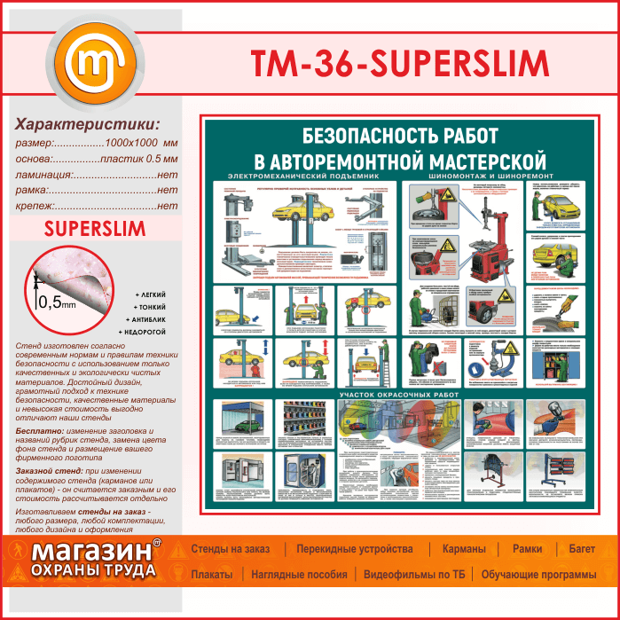 Стенд «Безопасность работ в авторемонтной мастерской» (TM-36-SUPERSLIM) в Видном купить