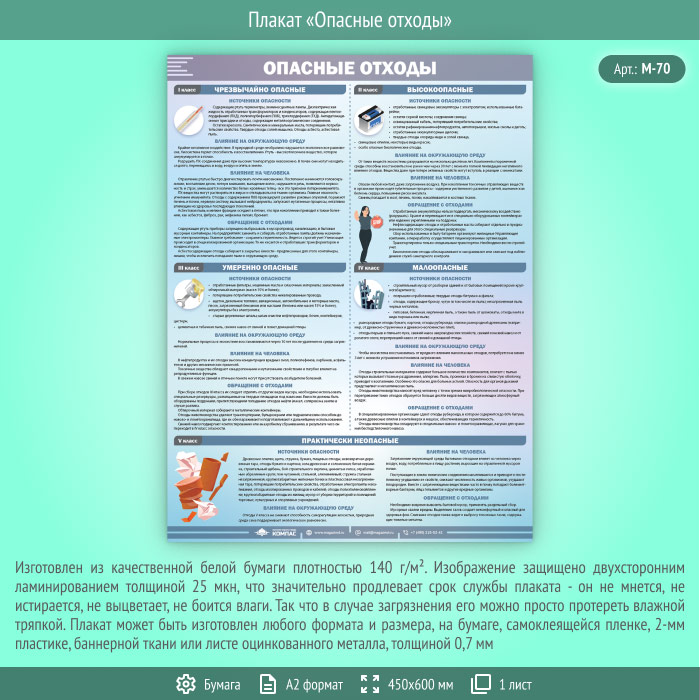Плакат «Опасные отходы» (М-70, ламинированная бумага, А2, 1 лист) в Видном купить