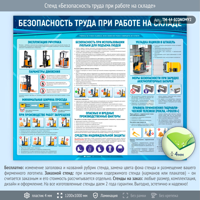 Стенд «Безопасность труда при работе на складе» (TM-44-ECONOMY2) в Видном купить