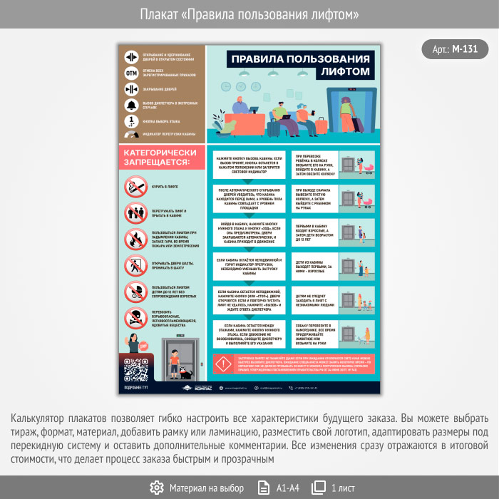 Плакат «Правила пользования лифтом» с QR (М-131, 1 лист) в Видном купить