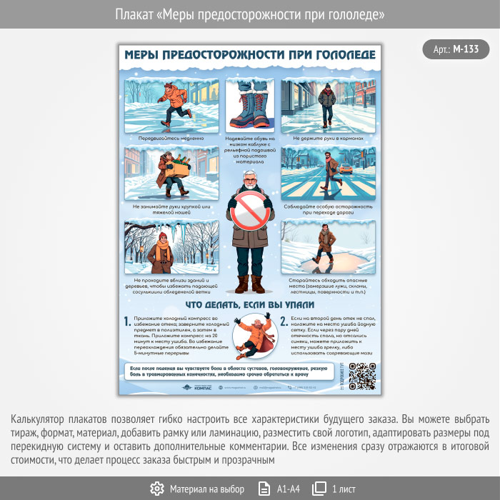 Плакат «Меры предосторожности при гололеде» с QR (М-133, 1 лист) в Видном купить