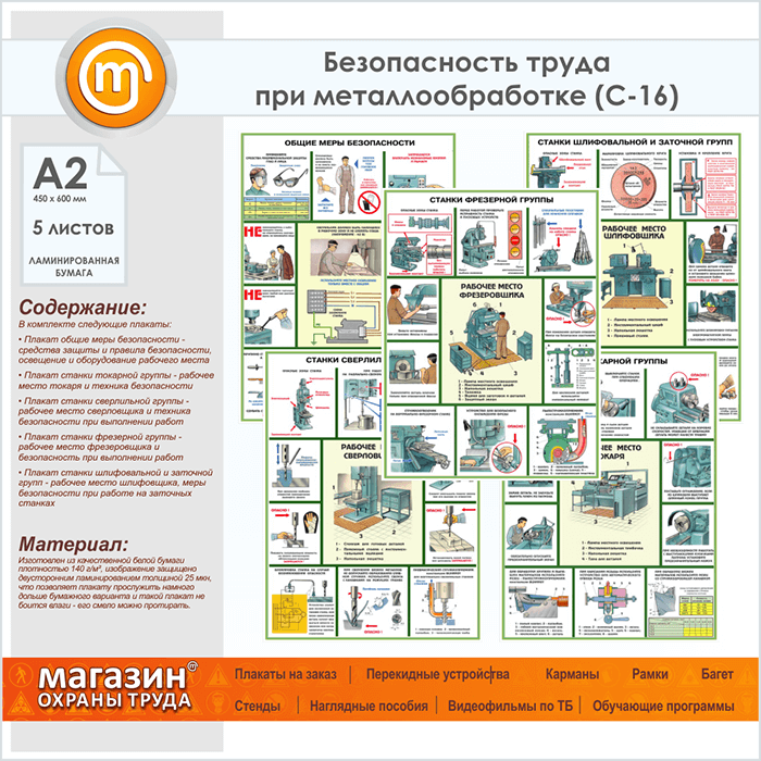 Плакат «Безопасность работ на металлообрабатывающих станках» (С-16, ламинированная бумага, А2, 5 листов) в Видном купить
