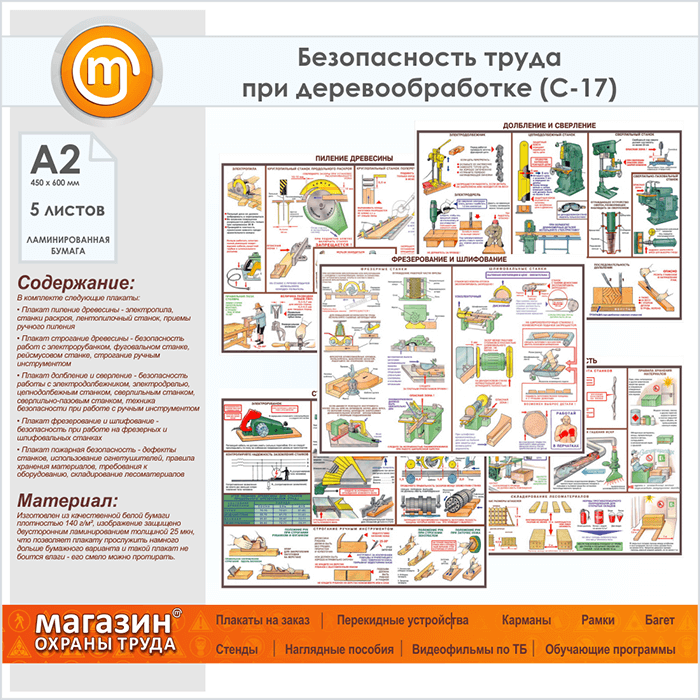 Плакаты «Безопасность труда при деревообработке» (С-17, ламинированная бумага, А2, 5 листов) в Видном купить