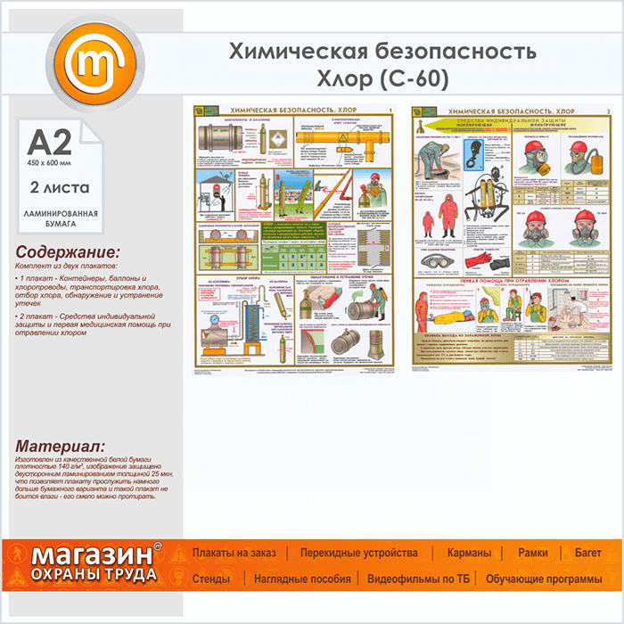 Плакаты «Химическая безопасность. Хлор» (С-60, ламинированная бумага, А2, 2 листа) в Видном купить