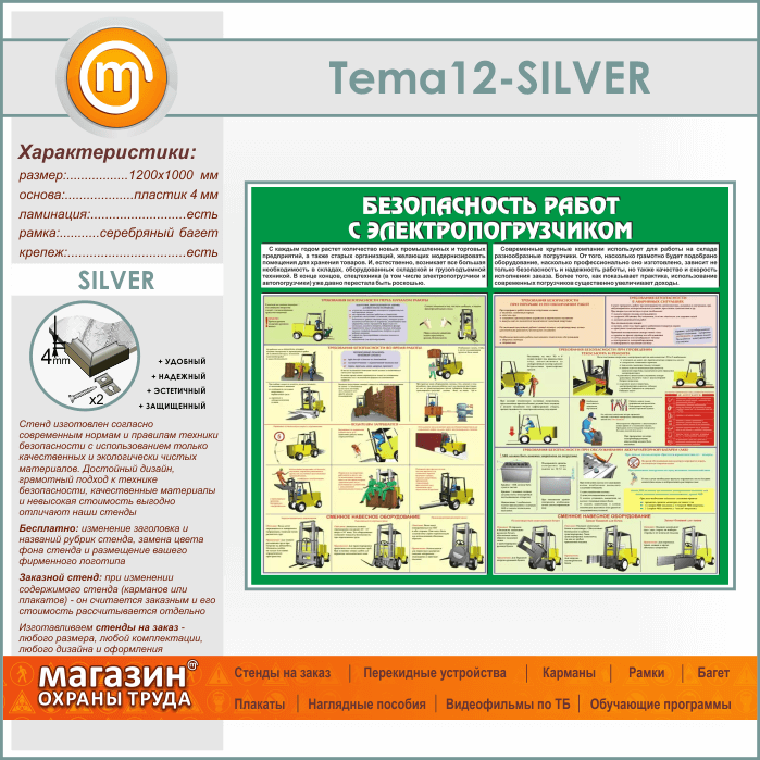 Стенд «Безопасность работ с электропогрузчиком» (TM-12-SILVER) в Видном купить