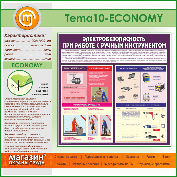 Стенд «Электробезопасность при работе с ручным инструментом» (TM-10-ECONOMY) в Видном купить