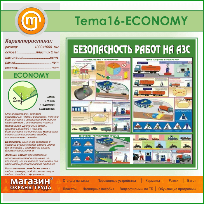 Стенд «Безопасность работ на автозаправочных станциях» (TM-16-ECONOMY) в Видном купить