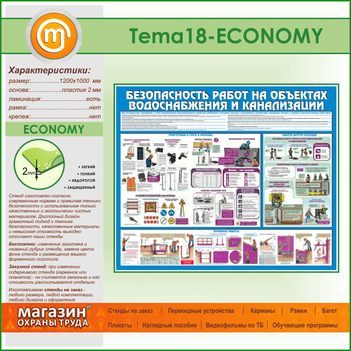 Стенд «Безопасность работ на объектах водоснабжения и канализации» (TM-18-ECONOMY) в Видном купить