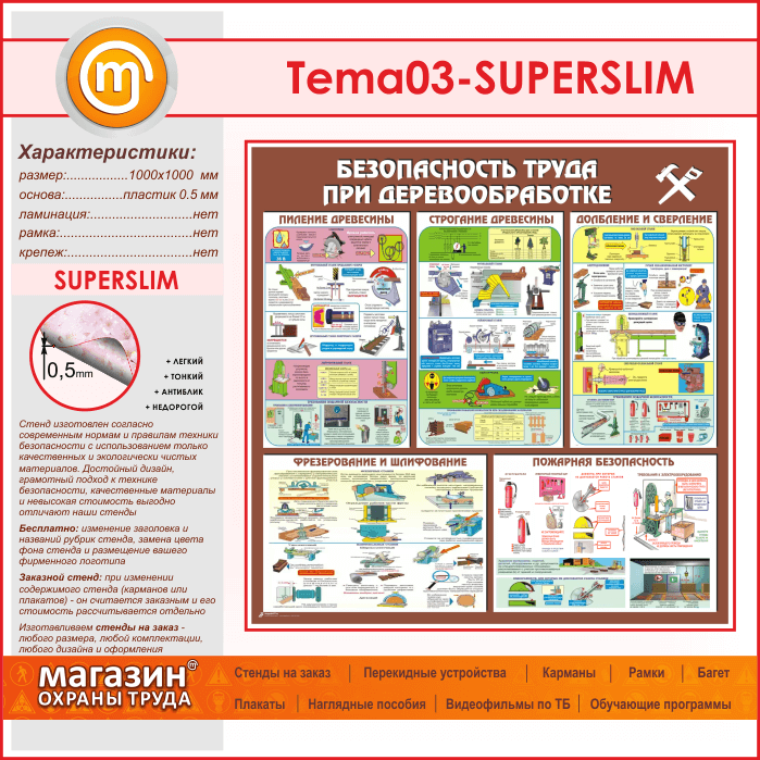 Стенд «Безопасность труда при деревообработке» (TM-03-SUPERSLIM) в Видном купить
