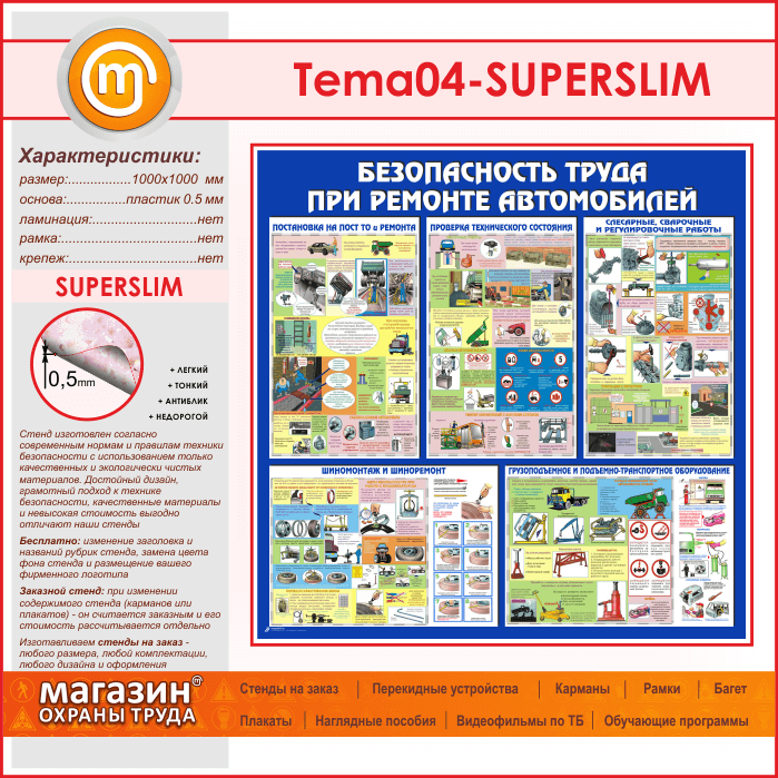 Стенд «Безопасность труда при ремонте автомобилей» (TM-04-SUPERSLIM) в Видном купить