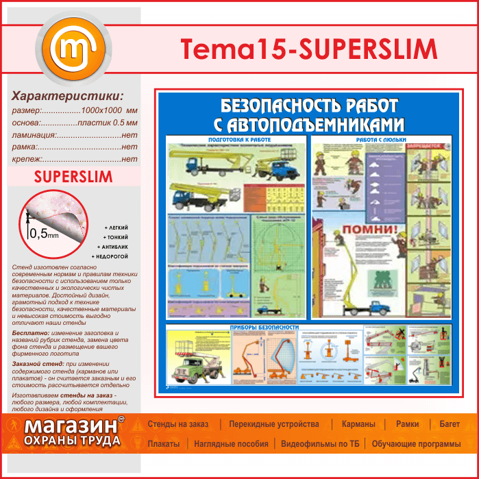 Стенд «Безопасность работ с автоподъемниками» (TM-15-SUPERSLIM) в Видном купить