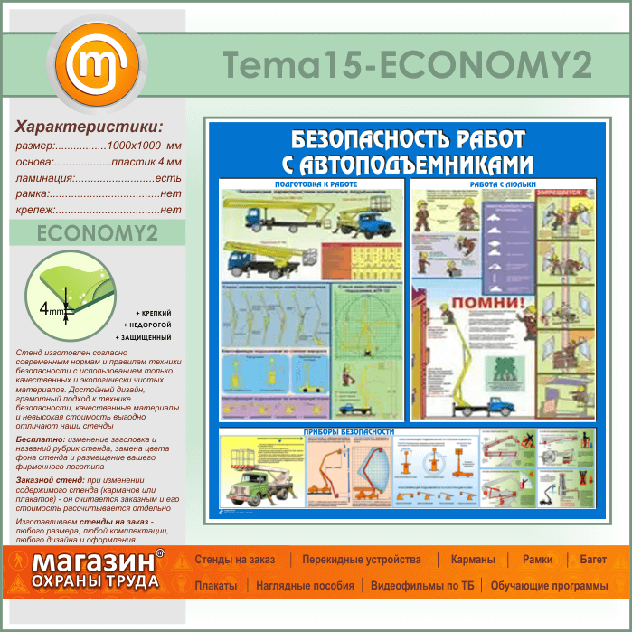 Стенд «Безопасность работ с автоподъемниками» (TM-15-ECONOMY2) в Видном купить