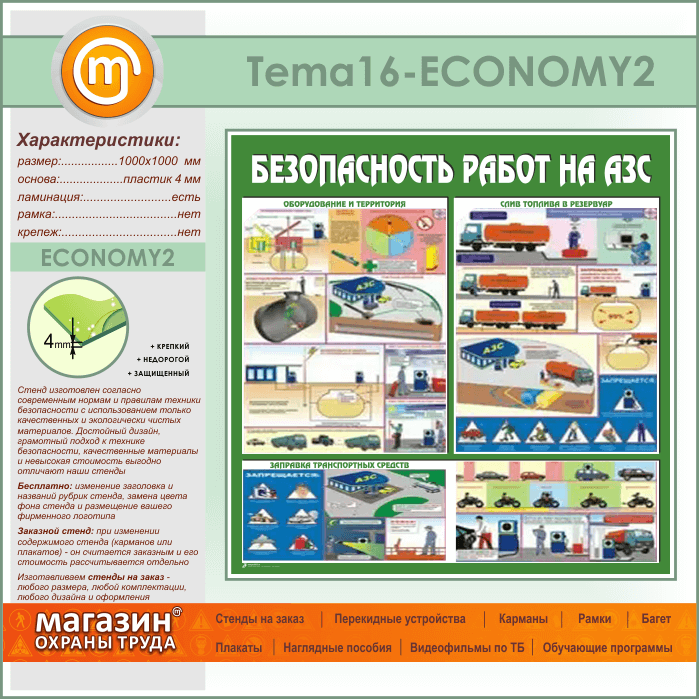Стенд «Безопасность работ на автозаправочных станциях» (TM-16-ECONOMY2) в Видном купить
