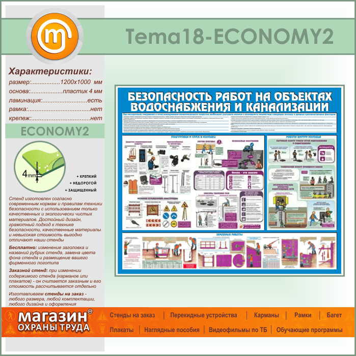 Стенд «Безопасность работ на объектах водоснабжения и канализации» (TM-18-ECONOMY2) в Видном купить