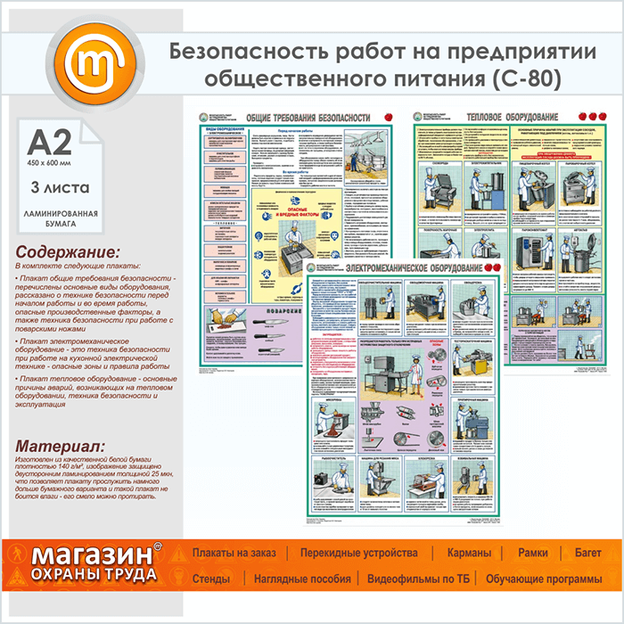Плакат « Правила охраны труда на предприятии общественного питания» (С-80, ламинированная бумага, А2, 3 листа) в Видном купить